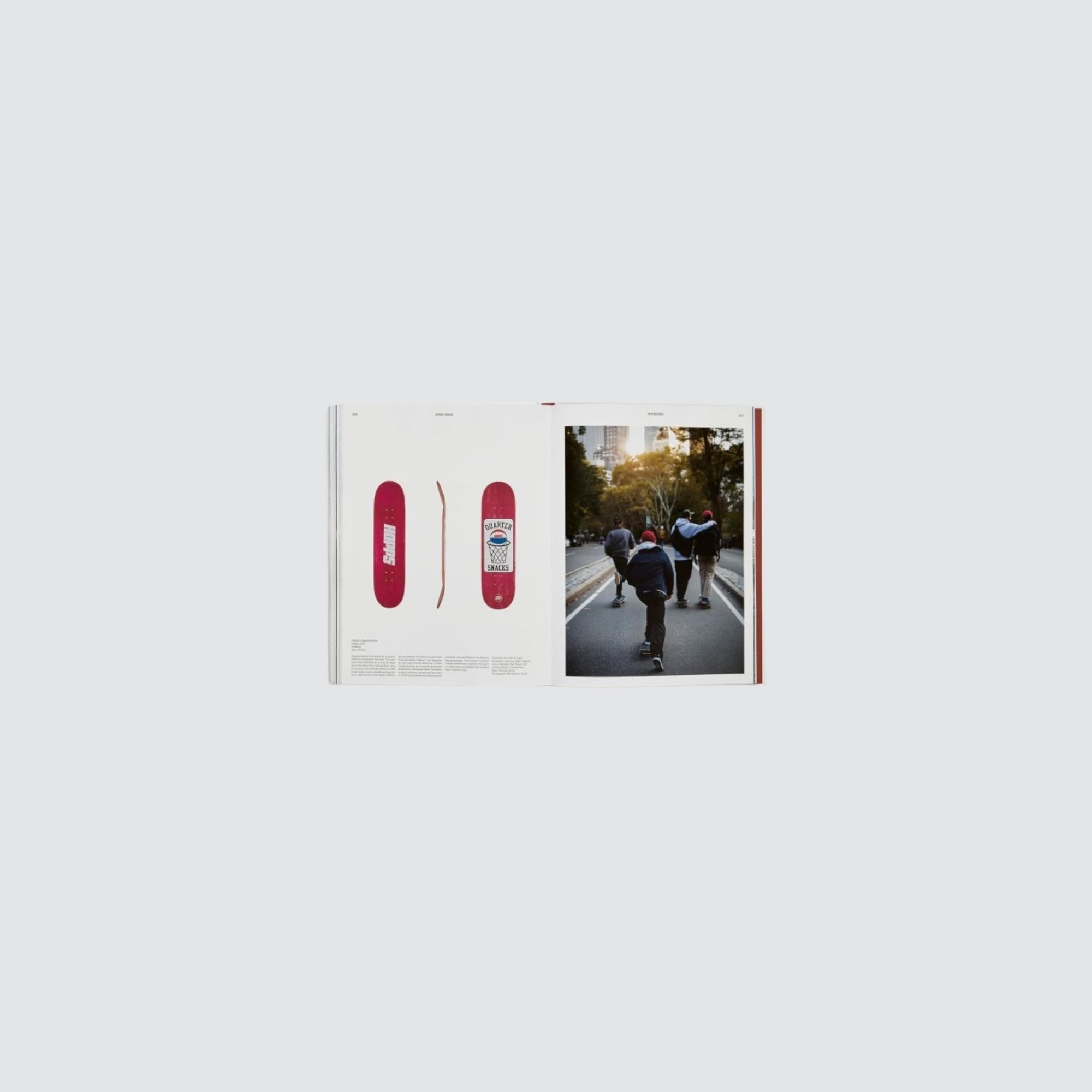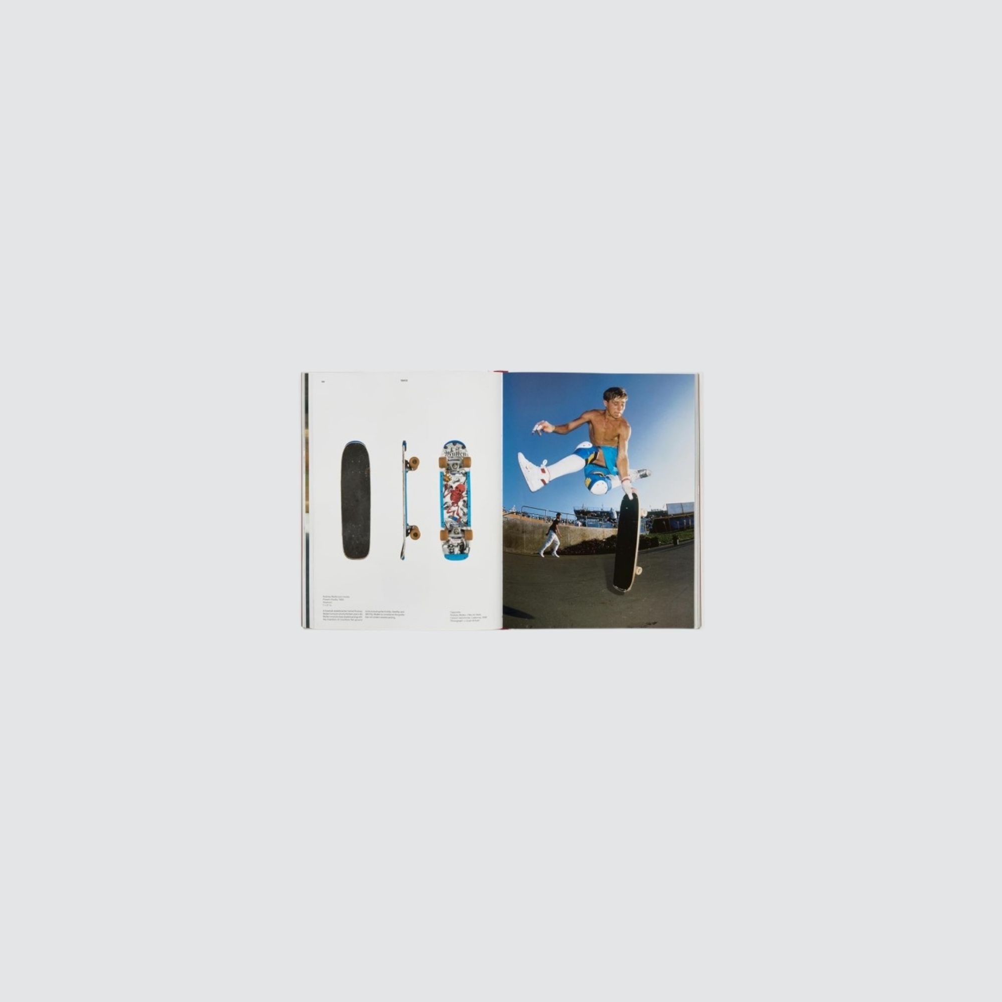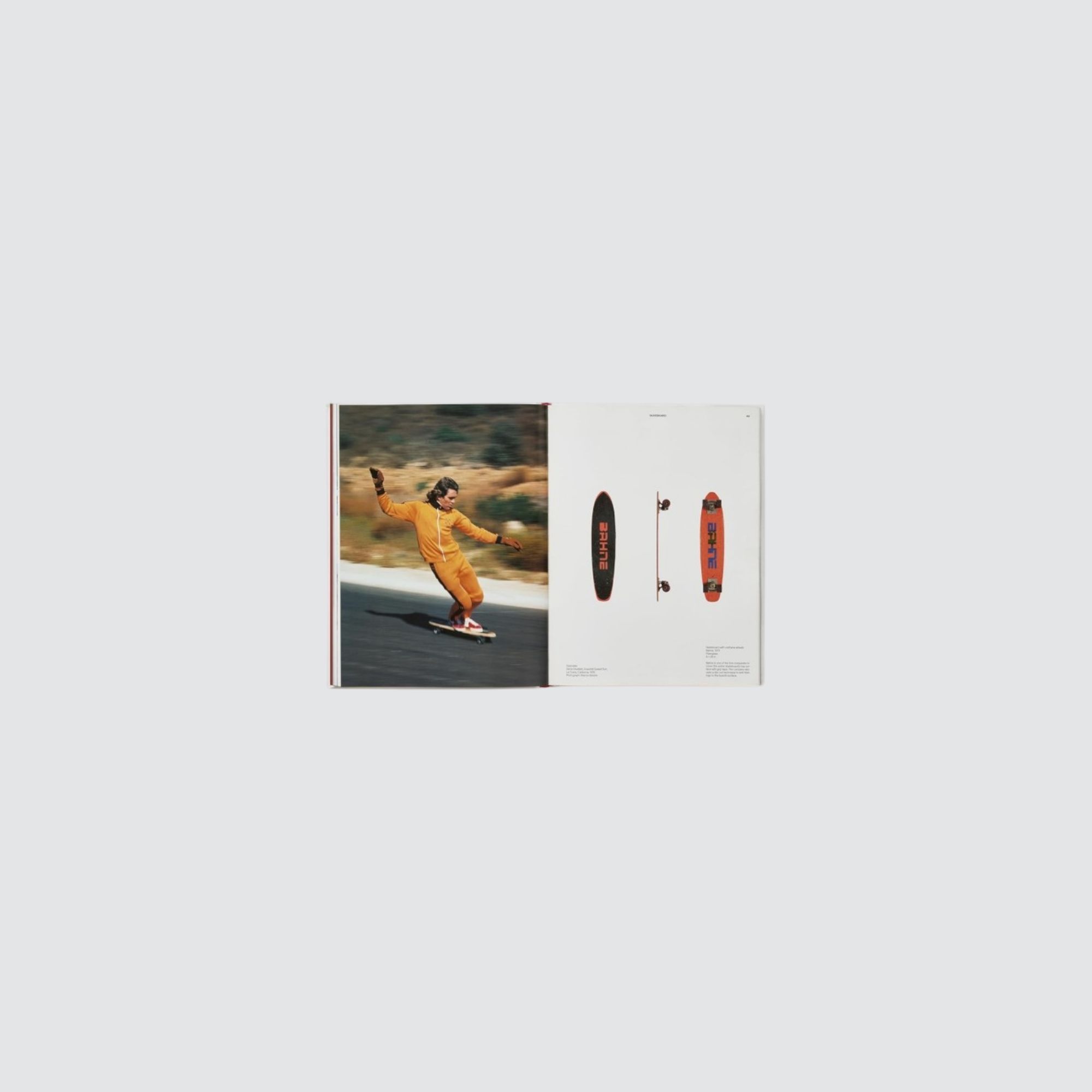 Each board featured in the book – from the 1963 Skee-Skate to the 1989 Mike Vallely pro model – is photographed to scale, allowing the reader to gauge the board’s individual flair and size in relation to its counterparts, and accompanied by engaging text from author, designer, and former skater Jonathan Olivares. Pro models of iconic skaters such as Laura Thornhill, Ray ‘Bones’ Rodriquez, Tony Hawk, Natas Kaupas, and Mike Vallely are also brought to life in a selection of archival action shots.